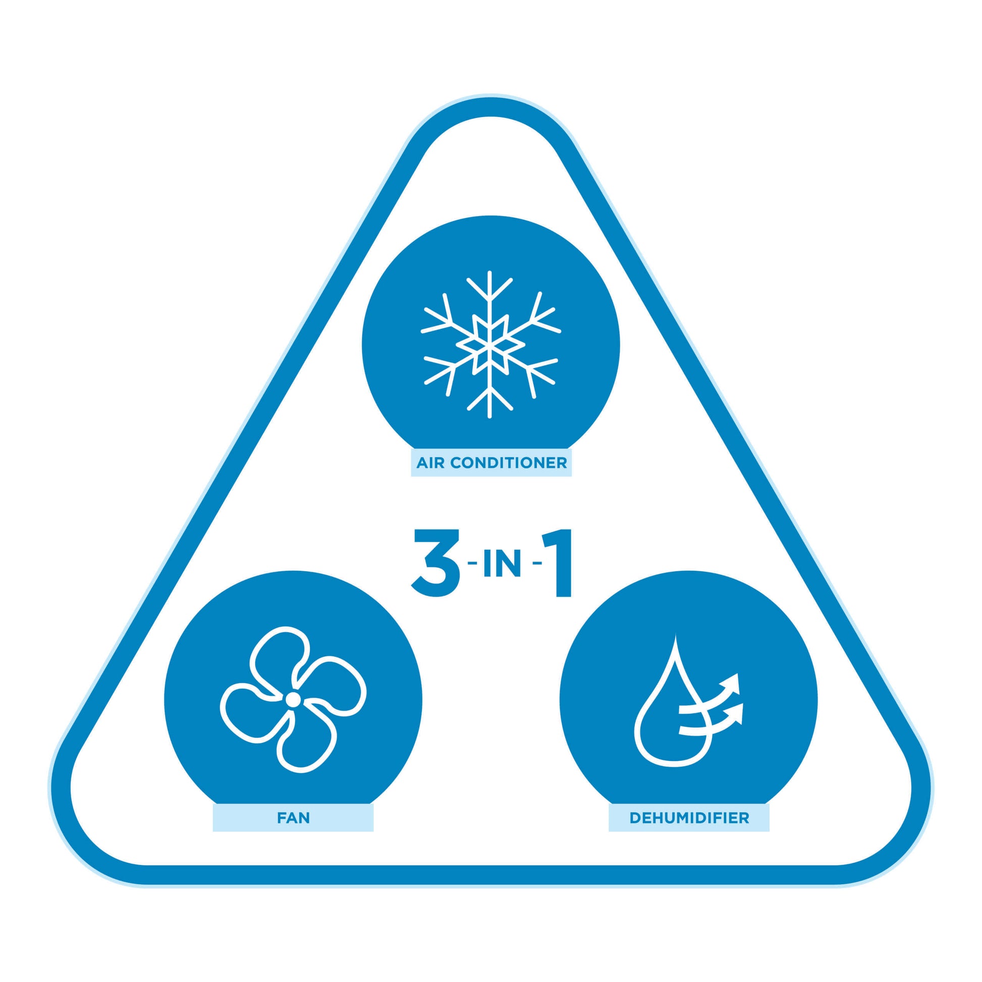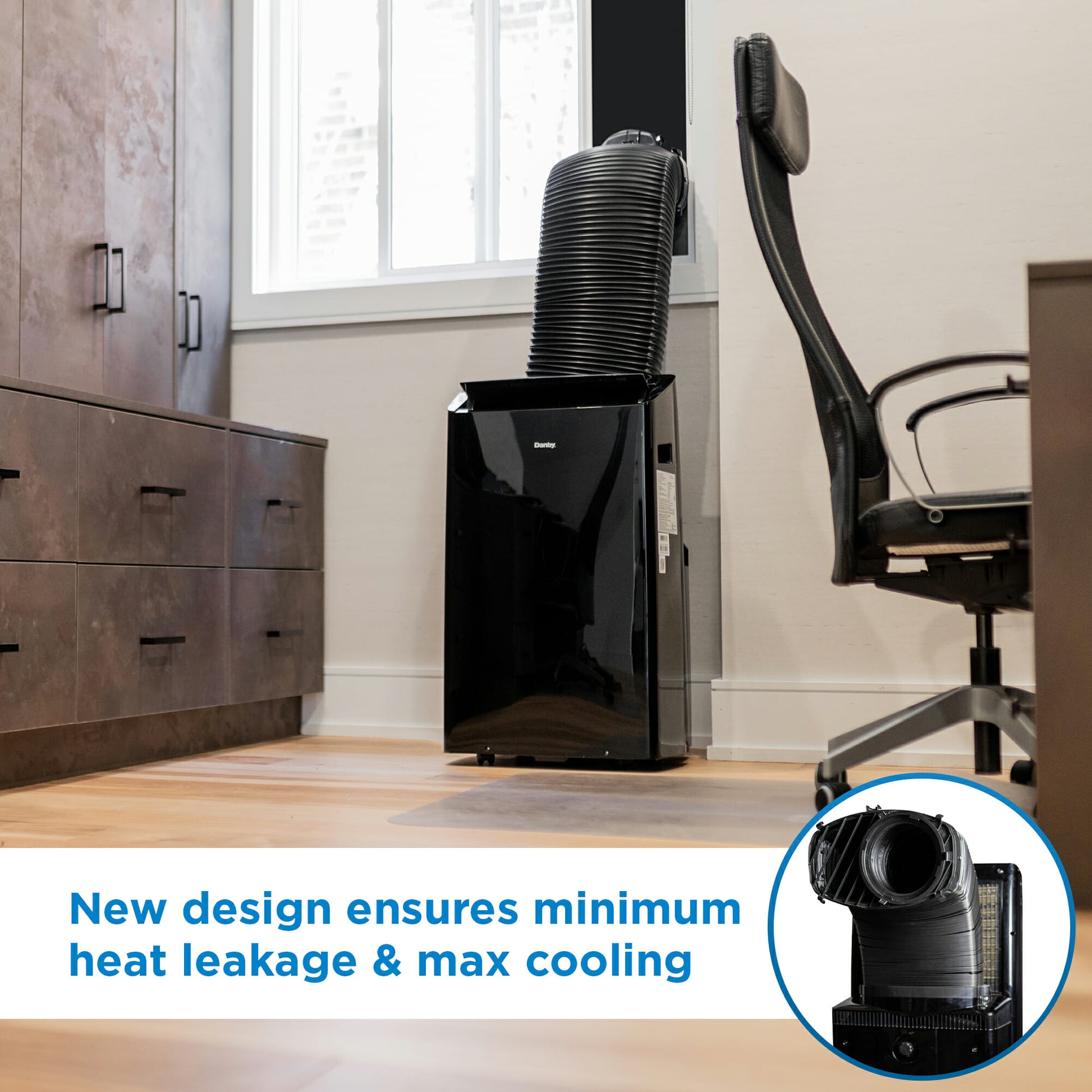 Cool down with this 14,000 BTU (12,00 SACC) portable air conditioner by Danby, perfect for cooling spaces up to 600 square feet. To help maximize your comfort, the 3-in-1 design: air conditioner, fan, and dehumidifier helps ensure you feel comfortable no matter the weather out! Use the Smart Control features to adjust the temperature from anywhere, anytime, through voice control! Its four castors make this unit easy to move from room to room and to install. Designed with an inverter compressor, this model is quiet and efficient. The air vent angle in this model also is 80-degree’s wider than older models and provides a more substantial airflow that reaches further and cools quicker. SACC is short for Seasonally Adjusted Cooling Capacity.