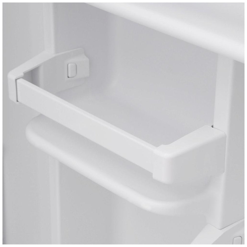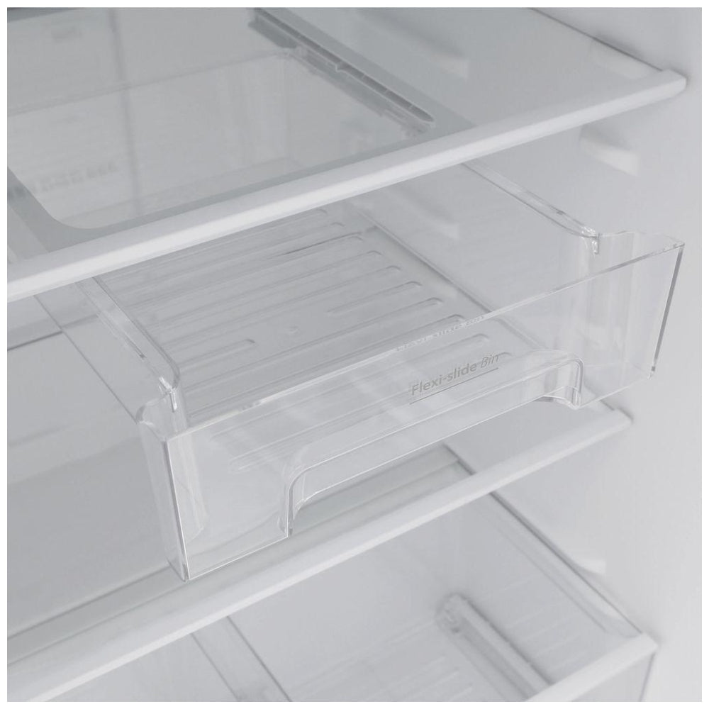The 30" Whirlpool top freezer refrigerator has clever features like Flexi-Side bins that move side to side to fit taller items when needed. The frameless glass shelves provide easily accessible wall-to-wall storage while electronic temperature controls help keep food fresh. Plus, the fridge's humidity-controlled crispers keep produce vibrant and visible.