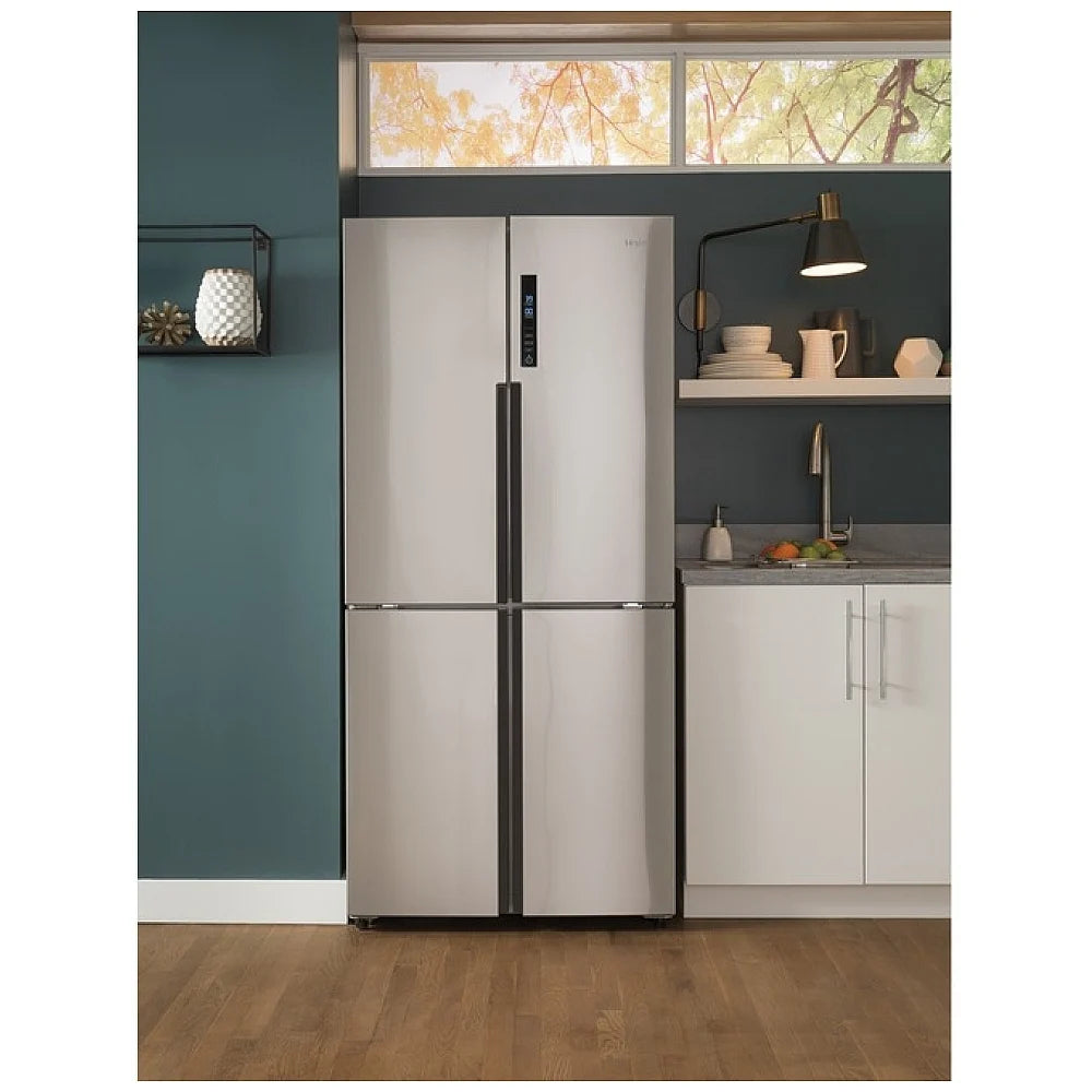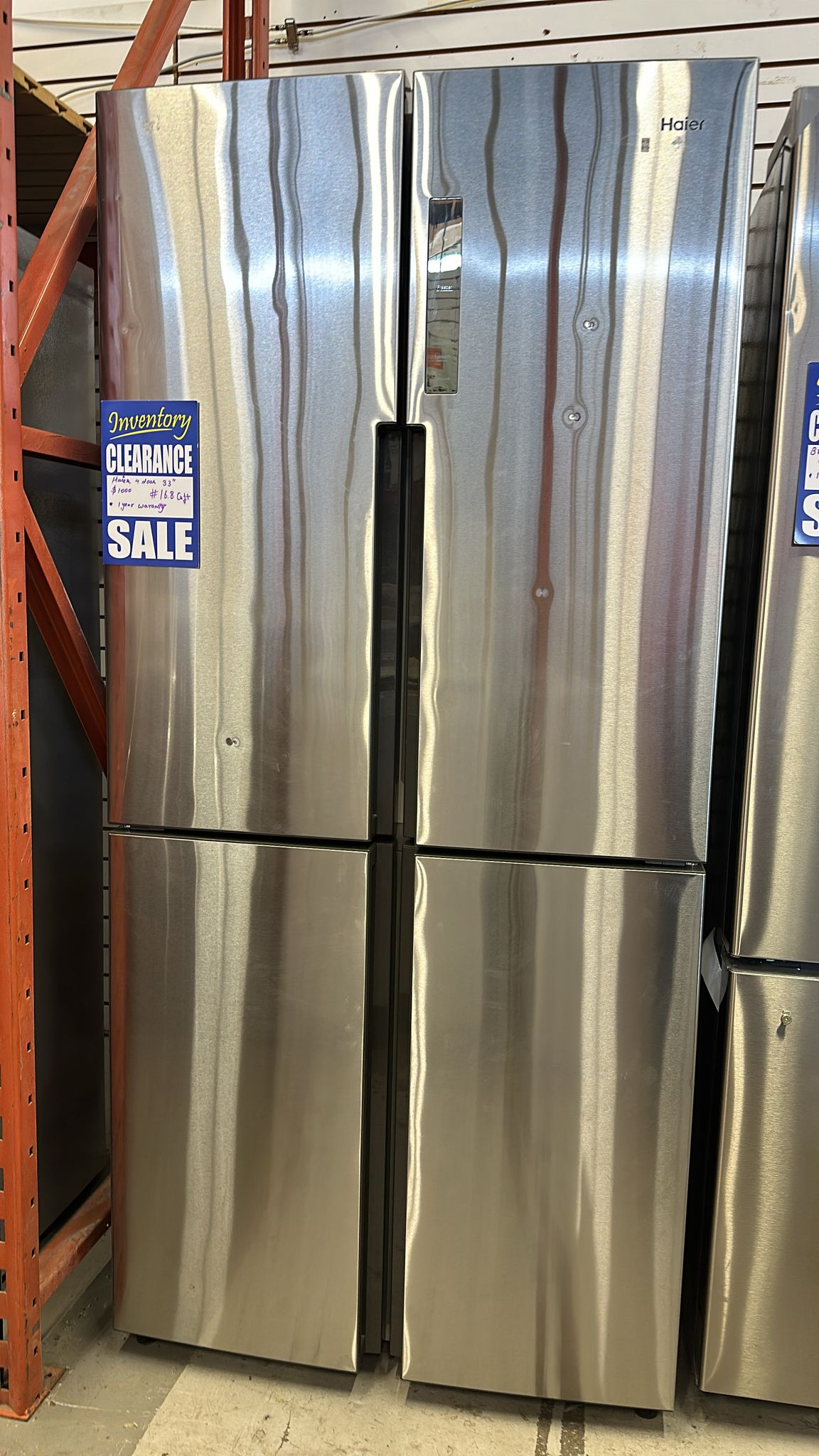 Get efficient cold storage for all of your favourite foods with this Haier quad-door refrigerator. It has a French-door fridge and 2-door bottom-mount freezer that combine to reduce the amount of cold air that escapes, ensuring foods aren't exposed to wide temperature changes. It has a humidity-controlled crisper drawer, LED Lighting, Edge-to-Edge Shelves, Digital Thermostat and more.