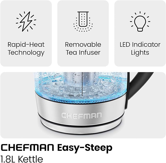 Chefman Easy-Steep 1.8L Electric Kettle with Tea Infuser, Stainless Steel