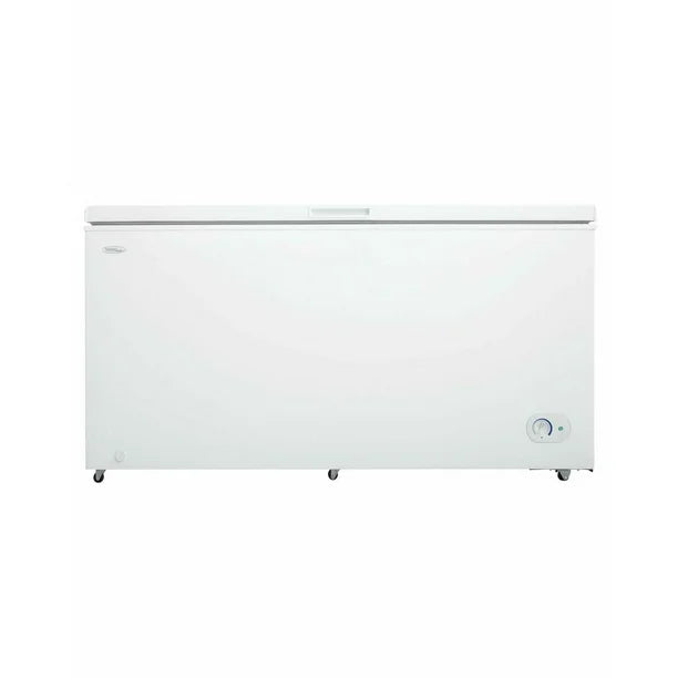 If you’re in the market for a large 14.5 cubic foot (412 liter) capacity chest freezer, you’ll find this model to be one of the most popular around. It offers an enormous amount of storage room. This unit features an energy-efficient insulated lid and cabinet which are also scuff resistant. There is a pair of storage baskets for your favorite foods and the interior liner is designed for simple cleaning. The front-mount thermostat is a multi-position unit and a handy defrost drain is also provided. This attractive white model also features an industry leading 5 year warranty on parts and labor.- Large capacity 14.5 cu ft chest freezer suitable for families of four or more