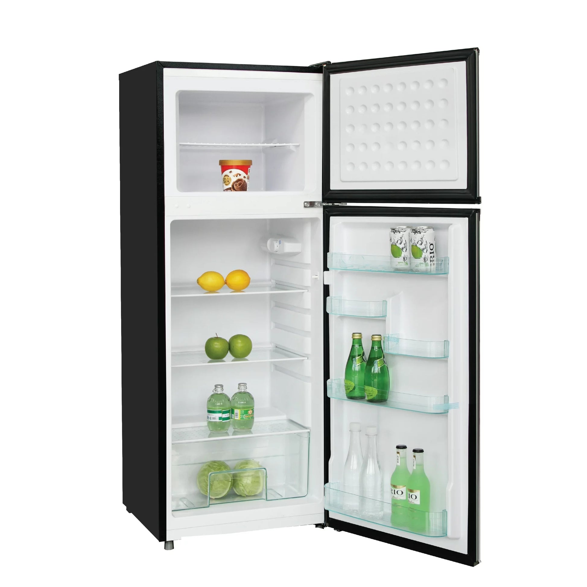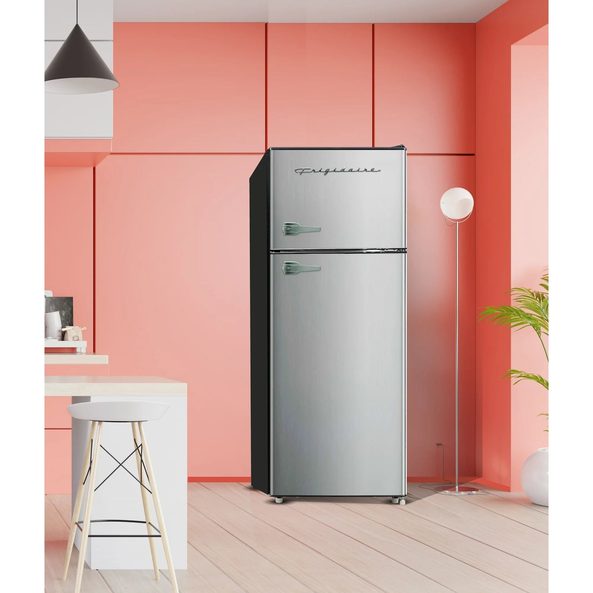 This fashionable refrigerator is ideal for all types of households as it offers 7.5 cubic feet (206 liters) of cooling space for your kitchen, dormitory or rec room. Maintenance is easy with the convenient cycle defrost system and finding your favorite beverages is a breeze due to the tall bottle storage in the door. This chic unit features easy-to-use mechanical controls. There are three adjustable glass refrigerator shelves and one adjustable/removable wire freezer shelf to provide maximum and versatile storage space. Your vegetables will stay cool and easy to find in the glass cover crisper. Left or right-handed opening is your choice with the reversible door hinge and this sturdy refrigerator can be installed against a wall with its smooth back design.