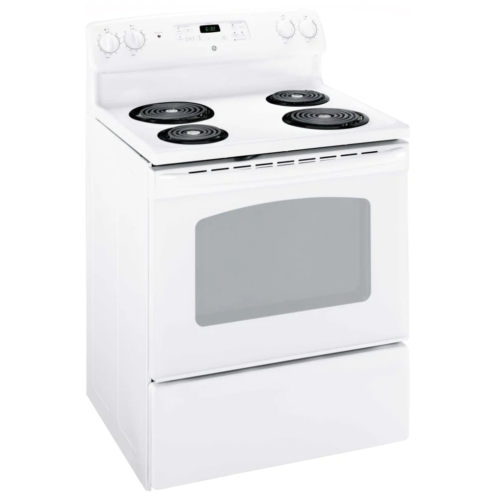 GE JCBS280DMWW Electric Range, 30" Exterior Width, 4 Burners, 5.0 cu. ft. Capacity, Storage Drawer, 1 Ovens, White (JCBS280DMWW)