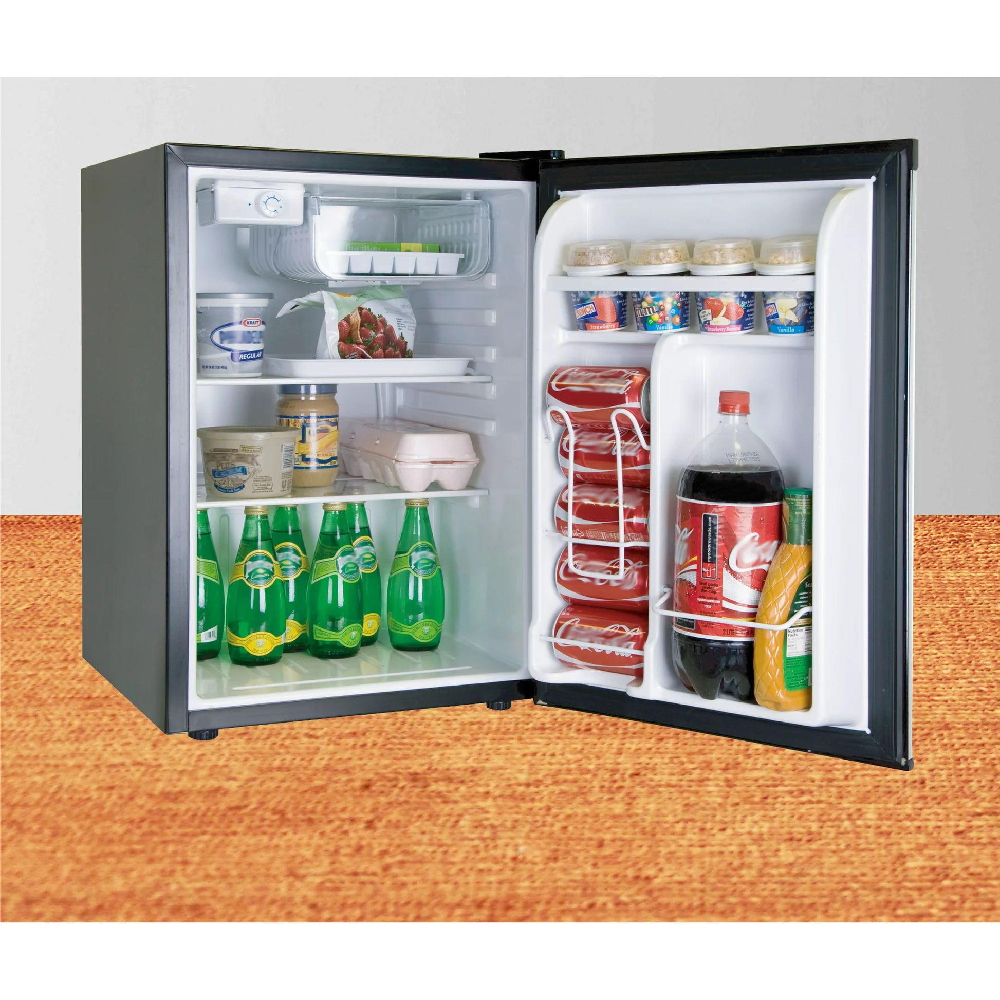 This Mini Refrigerator with ice cube compartment includes plenty of storage space for your fresh foods in a compact foot print. It is perfect for a dorm room, man cave/she shed or office. Glass shelves, ample door storage and a can dispenser keep your food organized and within easy reach. A sleek black finish with Stainless Steel Door provides a contemporary look that will easily compliment any decor.